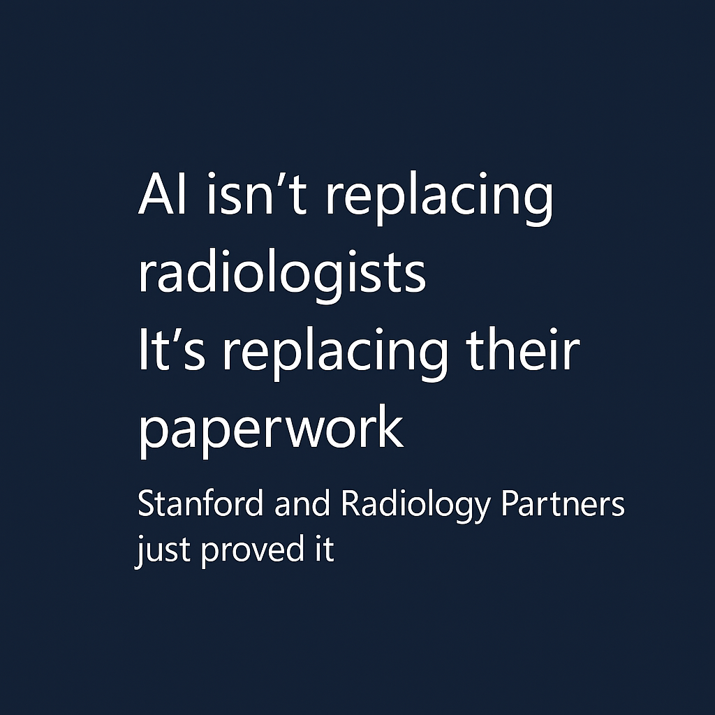 Radiologists don't need more AI detections. They need AI that thinks. Stanford's AIDE Lab just partnered with Radiology Partners to solve a problem the industry finally admitted: detection was never the bottleneck. Here's what's actually happening in radiology AI right now: Radiologists are already exceptional at finding disease markers. What exhausts them? The cognitive load of synthesizing findings, comparing prior exams, and generating reports. The market is responding. AI vision language models for draft report generation are moving from pilots to production. Chest X-ray models are live. CT and MRI models are next. But here's the real shift: The conversation has moved from "Which algorithm is best?" to "How do we run AI safely in production?" Stanford and Radiology Partners ...