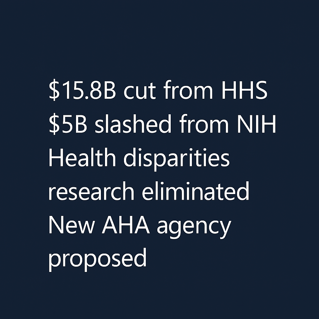 The White House just proposed the biggest HHS cut in recent memory. $15.8 billion slashed from HHS in the FY 2027 budget proposal released April 3rd. That's a 12.5% reduction from current funding levels. Here's what healthcare leaders need to know: NIH loses $5 billion. The National Institute on Minority Health and Health Disparities? Gone entirely. Labeled as "replete with DEI expenditures" in budget documents. The Agency for Healthcare Research and Quality (AHRQ) gets gutted by $129 million, deemed "wasteful or duplicative." They've already lost over 50% of their staff since September. Meanwhile, HHS staffing drops to 70% of pre-COVID levels, supposedly saving $3.1 billion annually through "centralized administration." But wait, there's more. The budget proposes creating an entirely new ...