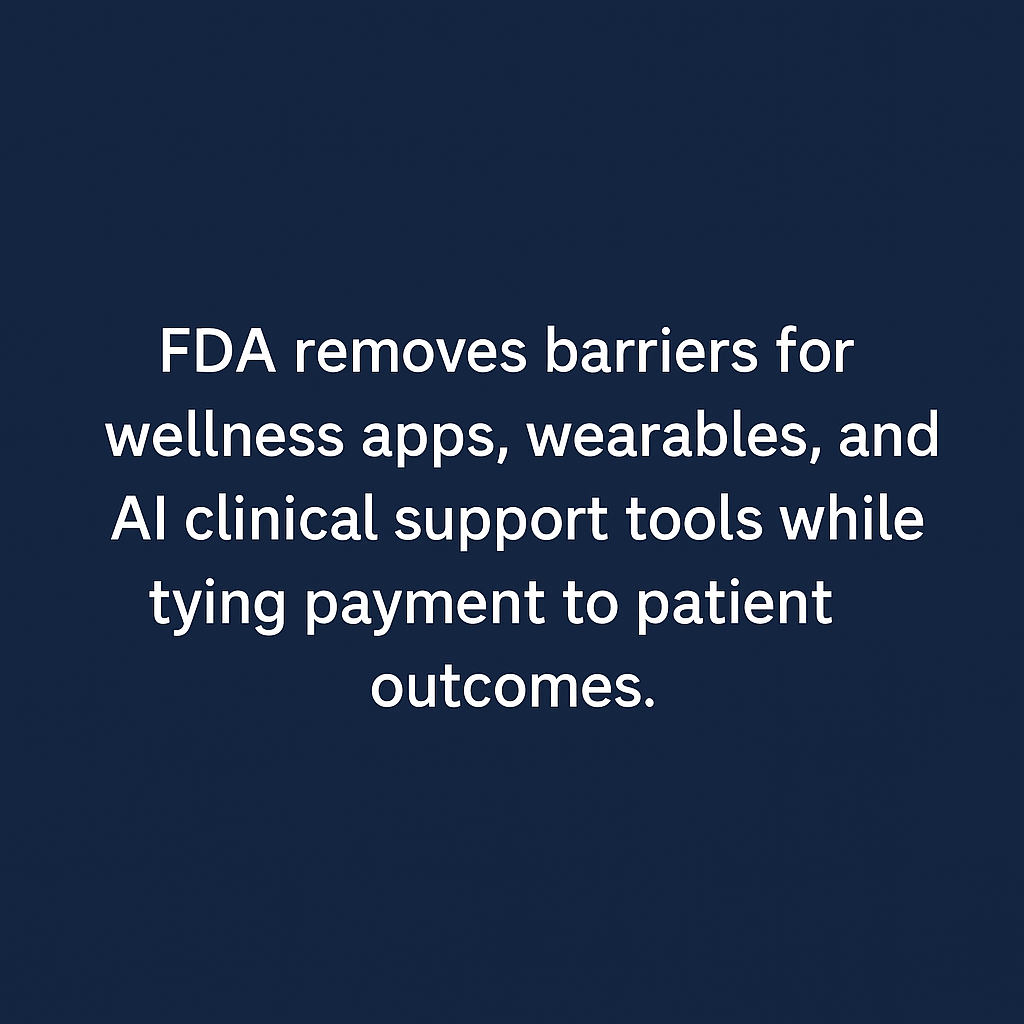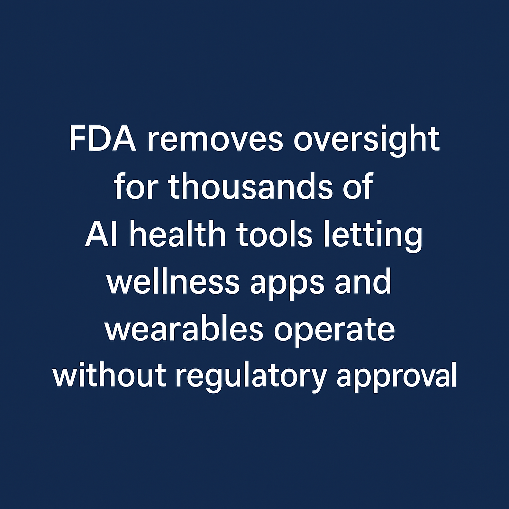 The FDA just unleashed thousands of AI health tools overnight. On January 6, Commissioner Marty Makary announced sweeping deregulation that exempts wellness apps, wearables, and certain clinical decision support tools from FDA oversight. This isn't a minor adjustment, it's a seismic shift. What changed: • Single-recommendation AI tools can skip FDA review if deemed "informational" • Long-term risk predictors (like cardiovascular risk) are now exempt • Wellness and fitness wearables face minimal oversight • Digital health companies can access Medicare patients through the new TEMPO pilot The dividing line? Time sensitivity and data complexity. AI that predicts your 10-year heart disease risk? No FDA review needed. AI that predicts risk within 24 hours or uses genomics? Still regulated. This creates ...